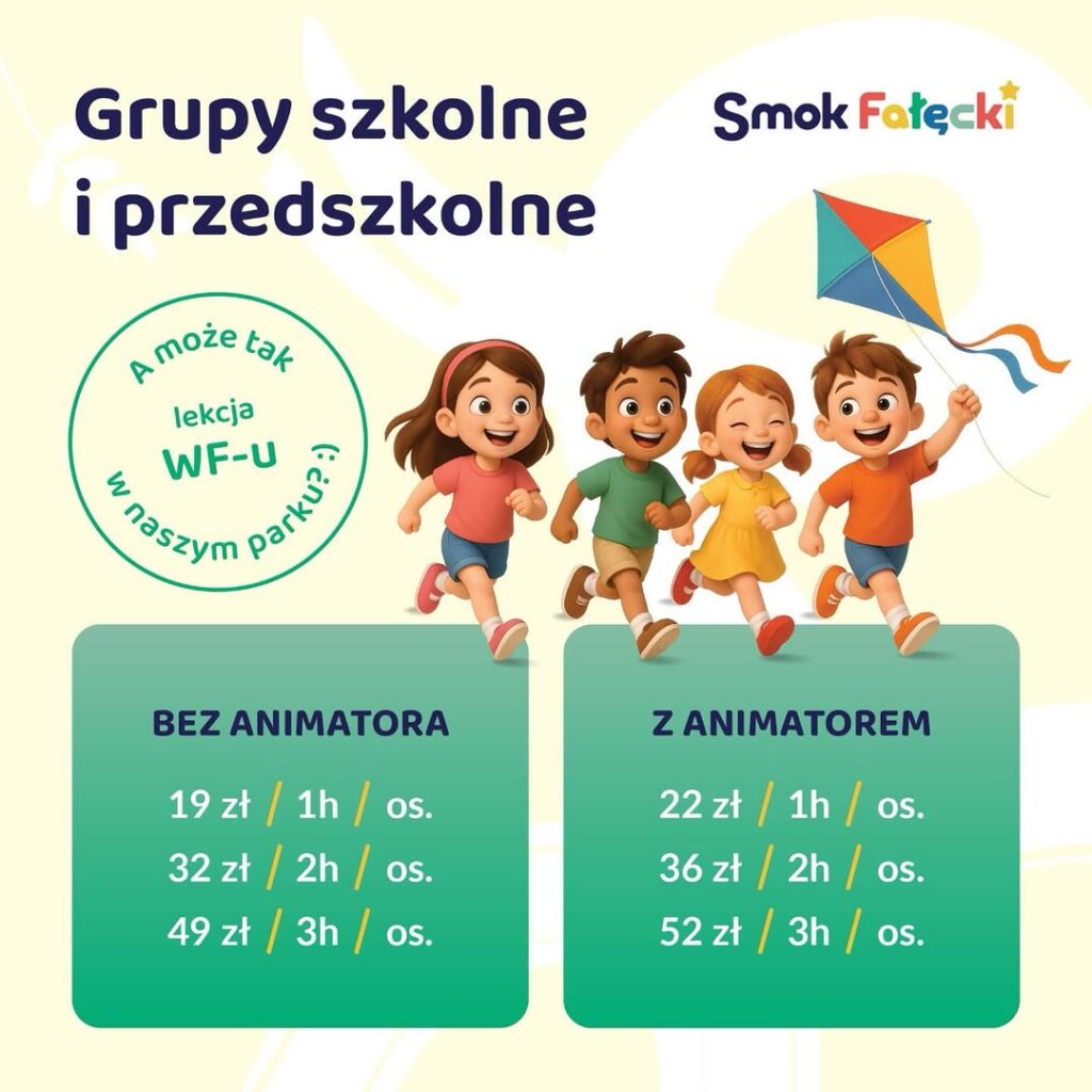 Smok Fałęcki to nie tylko sala zabaw dla indywidualnych odwiedzających, ale także doskonały kierunek na wycieczki przedszkolne i szkolne w Krakowie. Zorganizowane grupy mogą u nas liczyć na preferencyjne ceny, profesjonalną opiekę animatorów oraz elastyczny czas zabawy. Dzięki przestronnej, bezpiecznej hali i bogatej ofercie atrakcji dzieci spędzą tu czas aktywnie i wesoło, a opiekunowie będą mieli pewność, że wycieczka jest w pełni zorganizowana i bezpieczna.